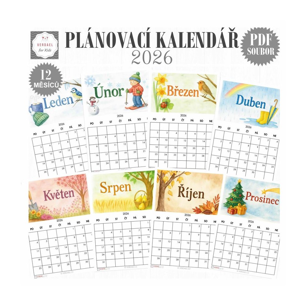 - 12 A4 s jednotlivými měsíci