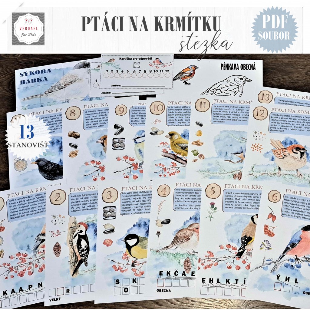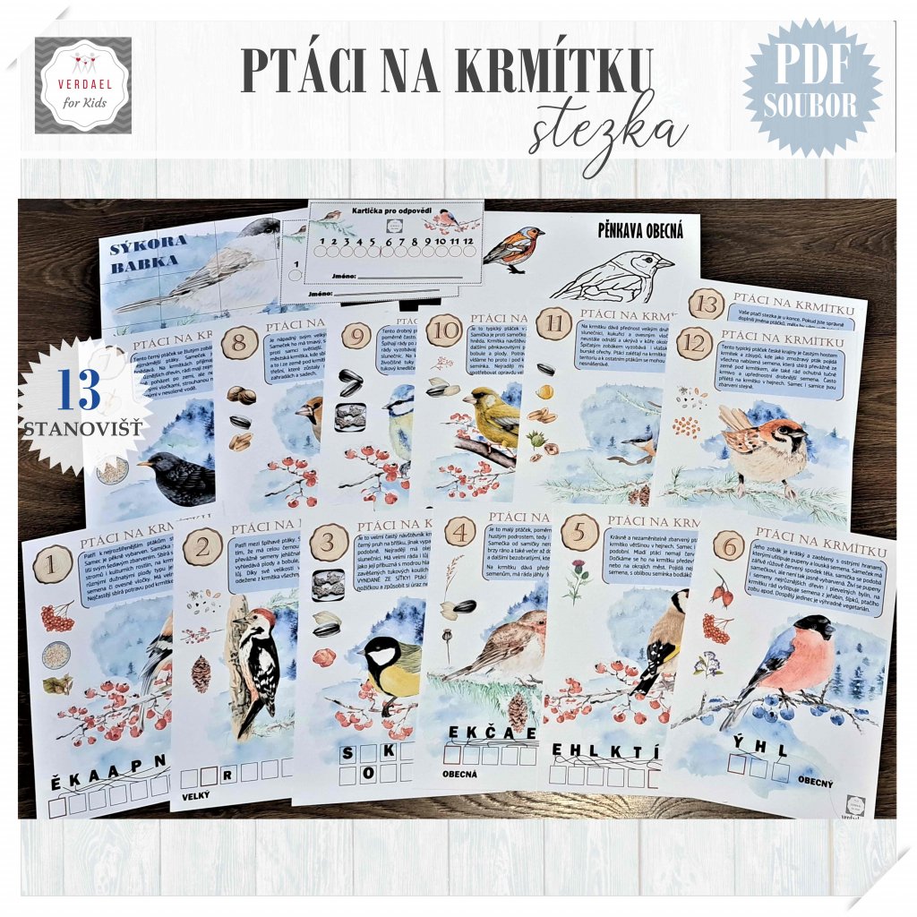 Stezka Ptáci na krmítku je naučná stezka, která si klade za cíl podpořit povědomí o ptačích druzích a nutnosti ptáčkům během zimy, ale ideálně během celého roku, pomáhat s přikrmováním. Stezka na každém z 12 stanovišť seznámí s jedním druhem ptáčka, kterého můžeme pozorovat na našem krmítku, název ptáčka, pokud ho návštěvník stezky nepozná z obrázku na první pohled, si musí vyluštit. Dále se na stanovišti návštěvník dozví, co daný ptáček konzumuje a jaké jsou rozdíly mezi samcem a samičkou. Po vyluštění názvu ptáčka je možné zapsat písmeno do tajenky.