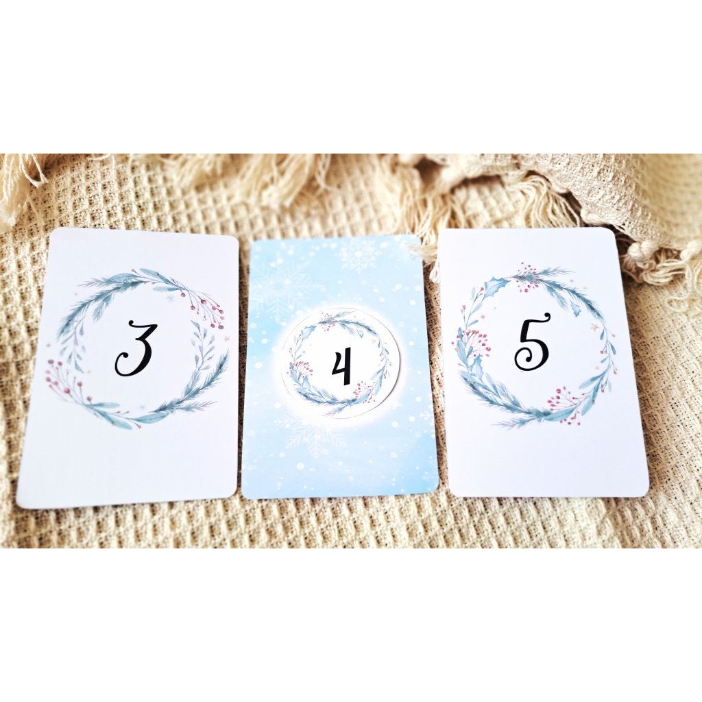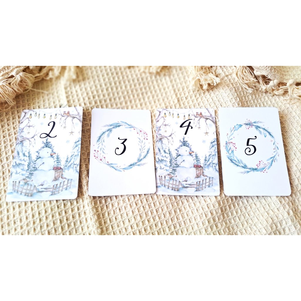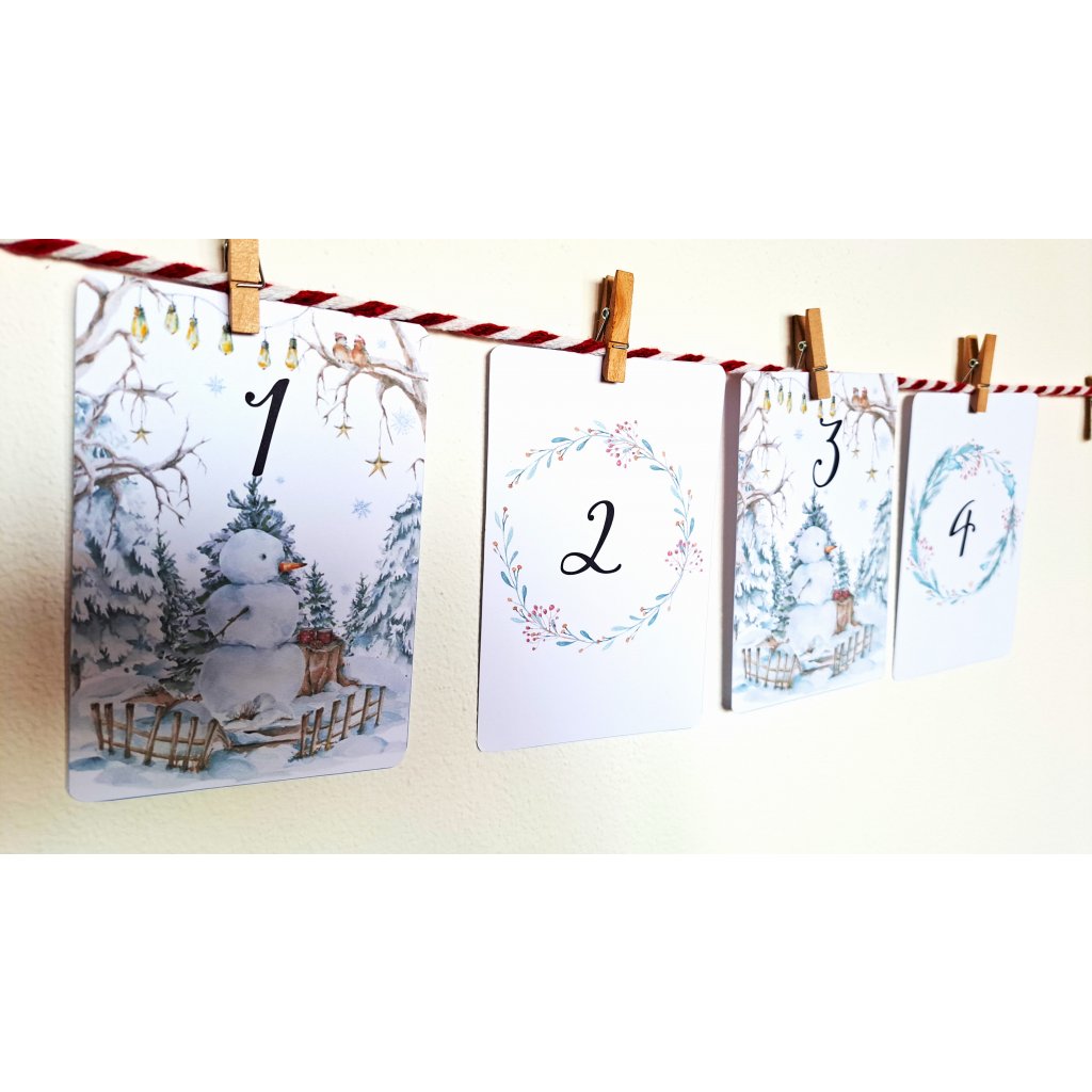 - 24 karet s čísly – design zimní krajina se sněhulákem