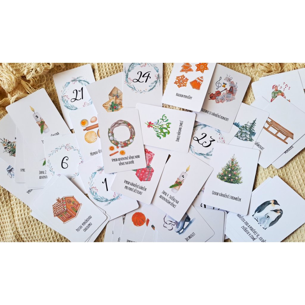 Představte si, jak děti s očekáváním odpočítávají dny do Vánoc. S naším zážitkovým adventním kalendářem můžete tyto chvíle udělat nezapomenutelnými. Zavěste ho na šňůrku a děti budou mít neustále na očích, kolik dní ještě zbývá. Každý odkrytý den jim připomene zážitky, které už prožili. Nebo karty přidávejte do adventních balíčků, které pro děti chystáte.