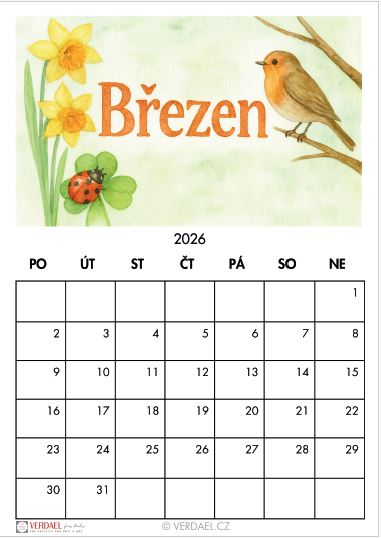 PLÁNOVACÍ KALENDÁŘ NA BŘEZEN 2026 - STÁHNOUT ZDARMA
